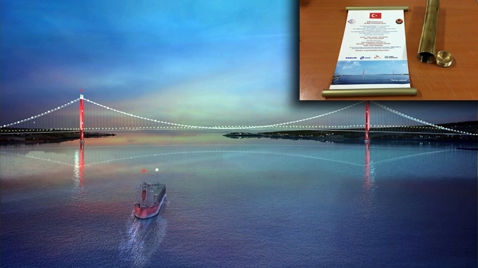 Yapı Merkezi liderliğindeki Daelim – Limak – SK E&C Ortak Girişim Grubu tarafından inşa edilen 1915 Çanakkale Köprüsü’nün temelindeki betonun içine tarih tüpü yerleştirildi.