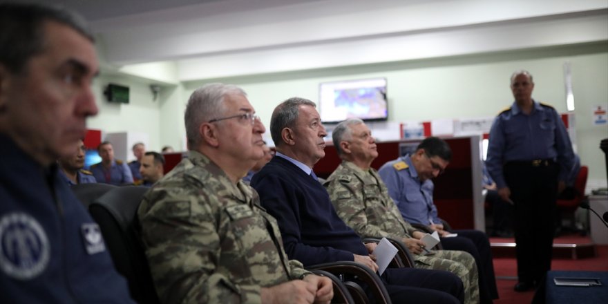 Milli Savunma Bakanı Hulusi Akar, Genelkurmay Başkanı Orgeneral Yaşar Güler ve kuvvet komutanlarıyla Mavi Vatan Tatbikatı'nın sevk ve idare edildiği karargahta denetleme ve incelemeler yaptı.