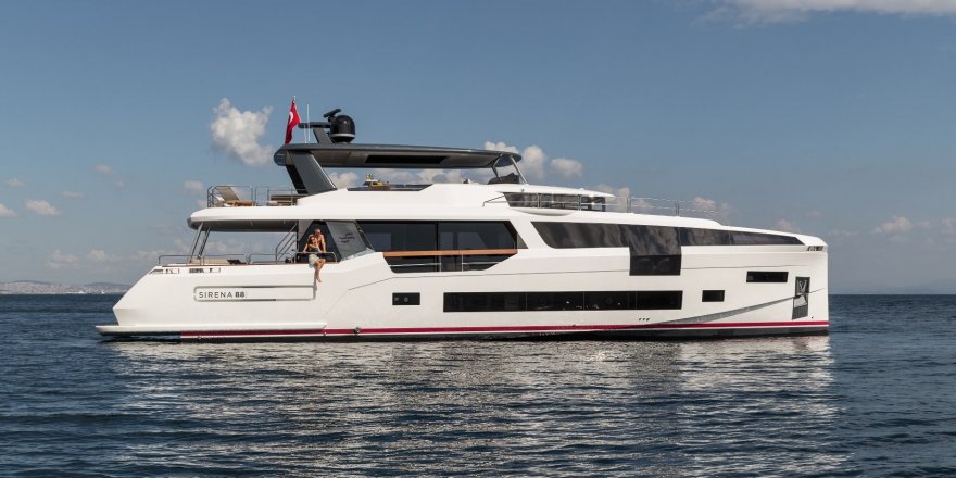 Sirena Yachts, kuruluşundan sadece altı yıl sonra 100. teknesini üreterek çok önemli bir başarıya imza attı. ABD’li sahibine teslim edilen 100. tekne aynı zamanda serinin amiral gemisi olan Sirena 88 modeli. Cannes Yachting Festival 2019’da ilk kez dünyanın karşısına çıktığı günden bu yana büyük ilgi çeken model, süperyat anlayışıyla üretiliyor ve sahibinin isteklerine göre özelleştirilebiliyor. Pırıl pırıl beyaz renkte bordasının siyah camlarla birleşimi sonucu ortaya çıkan çarpıcı görüntüsüyle dikkatleri üzerine çeken model, baş taraftaki jakuzisi ve sınıfının en büyük master kamarası ile rakiplerini geride bırakıyor.
