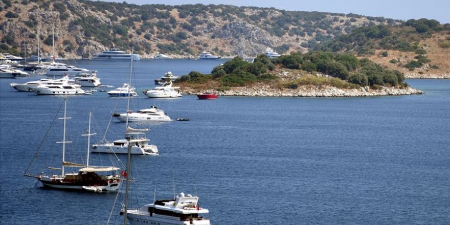Türkiye'nin turizm cenneti Bodrum'un maviyle yeşilin buluştuğu eşsiz koylarında yat yoğunluğu yaşanıyor