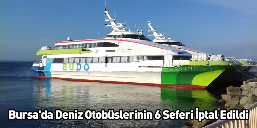 Büyükşehir Belediyesince işletilen deniz otobüslerinin saat 07.00'deki Bursa (Mudanya)-İstanbul (Eminönü/Sirkeci), 08.30'daki İstanbul (Eminönü/Sirkeci)-Bursa (Mudanya), 09.30'daki Bursa (Mudanya)-İstanbul (Eminönü/Sirkeci), 09.30'daki Bursa (Mudanya)-Armutlu (İhlas), 10.00'daki Armutlu (İhlas)-İstanbul (Eminönü/Sirkeci) ve 11.30'daki İstanbul (Eminönü/Sirkeci)-Bursa (Mudanya) seferlerinin olumsuz hava koşulları nedeniyle iptal edildiği bildirildi.