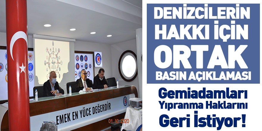 1 Ekim 2020 Perşembe günü TÜRK-İŞ 1. Bölge Temsilciği’nde Türkiye Denizciler Sendikası ve TÜRDEF (Türkiye Denizcilik Federasyonu) denizcilerin yıpranma payı hakkının geri verilmesi konusunda basın açıklaması gerçekleştirdi.