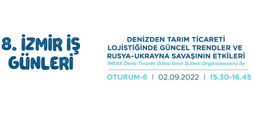 İş Günleri kapsamında, 2 Eylül 2022 Cuma günü 15.30-16:45 saatleri arasında İMEAK Deniz Ticaret Odası İzmir Şubesi ev sahipliğinde “Denizden Tarım Ticareti Lojistiğinde Güncel Trendler ve Rusya-Ukrayna Savaşının Etkileri” başlıklı toplantı yapılacaktır.