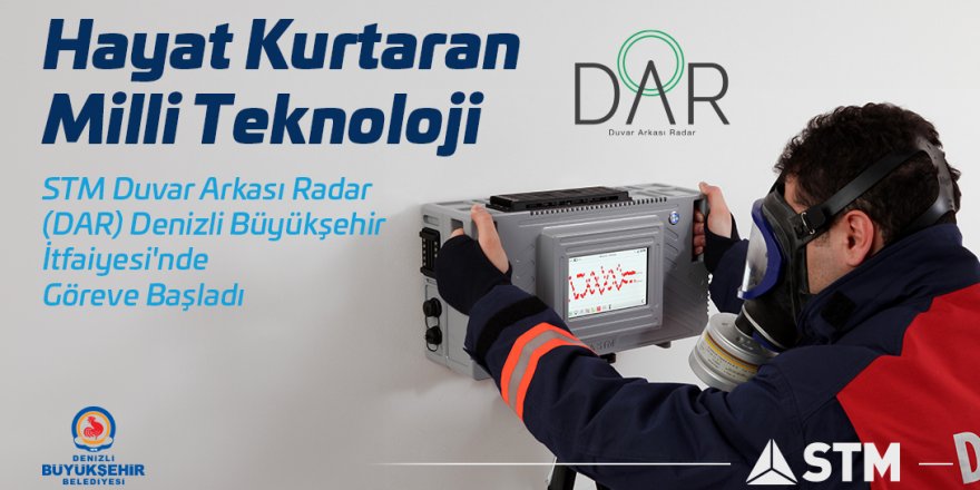Türk savunma sanayiinde, ileri teknolojiler ve milli çözümlere imza atan STM Savunma Teknolojileri Mühendislik ve Ticaret A.Ş., savunma alanında geliştirdiği sistemleri sivil alana taşımaya devam ediyor. T.C. Cumhurbaşkanlığı Savunma Sanayii Başkanlığı öncülüğünde çalışmalarını sürdüren STM, askeri ve sivil kullanım amacıyla geliştirdiği, STM Duvar Arkası Radar (DAR) sistemini güncellenen konfigürasyonu ile Denizli Büyükşehir İtfaiyesi’nin envanterine kazandırdı. Denizli İtfaiye Teşkilatı, “STM DAR”ı envanterine alan ilk itfaiye teşkilatı oldu. DAR’ın kullanım eğitimleri STM tarafından, itfaiye teşkilatında görevli personellere verildi ve “STM DAR”, Enkaz Altında Canlı Tespit Radarı olarak Denizli İtfaiyesi’nde göreve başladı.