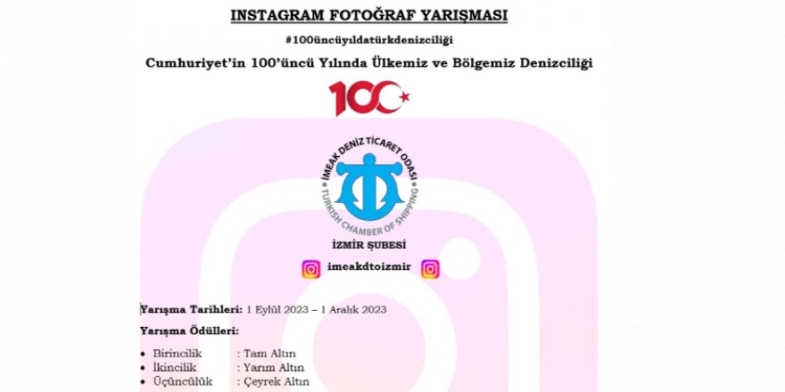 İMEAK Deniz Ticaret Odası İzmir Şubesi'nin Cumhuriyetin 100. Yılı için düzenlediği fotoğraf yarışması oldukça çeşitli denizcilik konularını kapsayan bir tema ile gerçekleşiyor.