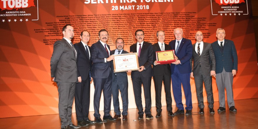 İMEAK Deniz Ticaret Odası İzmir Şubesi, TOBB Akreditasyon Sertifikası’nı dün Gümrük ve Ticaret Bakanı Bülent Tüfenkçi, TOBB Başkanı Rifat Hisarcıklıoğlu ve TOBB Başkan Yardımcısı Halim Mete’nin elinden aldı.