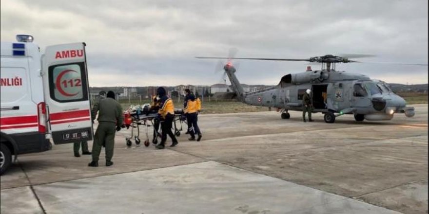 Deniz Kuvvetleri'ne ait helikopterle Çanakkale'ye getirilen hastalar, 2 ayrı ambulans ile Mehmet Akif Ersoy Devlet Hastanesi'ne kaldırılarak tedaviye alındı.