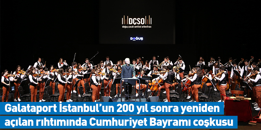 Türkiye'deki çeşitli konservatuvarların 11-18 yaş grubu öğrencilerini bir araya getiren Doğuş Çocuk Senfoni Orkestrası (DÇSO), Galataport İstanbul’un açılışını 17.00-18.00 saatleri arasında Rıhtım Meydanı’nda vereceği ücretsiz konserle taçlandıracak. Doğuş Grubu’nun kurucu destekçiliğiyle 2006 yılında çalışmalarına başlayan DÇSO, Şefliğini ve Genel Müzik Direktörlüğünü yapan Prof. Rengim Gökmen yönetiminde, genç piyanistlerden İlyun Bürkev’in de solist olarak katılımıyla gerçekleştirilecek konser, Boğaz’ın eşsiz manzarası eşliğinde Cumhuriyet Bayramı coşkusu yaşatacak. Kuruluşundan bu yana gerçekleştirdiği konserlerde, Türkiye'den ve dünyadan pek çok ünlü isme eşlik eden DÇSO‘nun eşlik ettiği isimler arasında; dünyaca ünlü piyanistler Fazıl Say ve Gülsin Onay, keman sanatçısı Cihat Aşkın, “3 Tenor” olarak tanınan Ayhan Uştuk, Aykut Çınar, Şenol Talınlı ile flamenkonun efsane gitaristi Jose Maria Gallardo Del Rey, Antonio Marqu Dans Kumpanyası, tenor Nicola Martinucci ve kemancı Alexander Markov gibi ünlü isimler bulunuyor.
