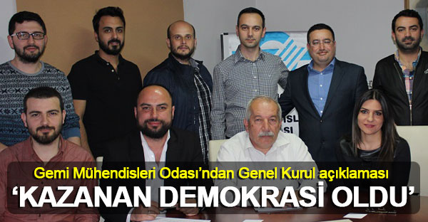 Gemi Mühendisleri Odası tarafından yapılan açıklamada, 45. Olağan Genel Kurul için “Genel Kurul demokrasi zaferi ile sonuçlanmış ve odamızı daha ileriye taşıyacağına emin olduğumuz bayrak yarışının gereği yerine gelmiştir” denildi. Açıklamada "Kazana
