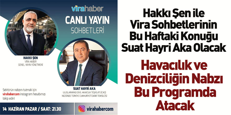 Hakkı Şen ile Vira Sohbetleri'nin 14 Haziran pazar günü 21.30'da gerçekleşecek olan programının konuğu Uluslararası Havacılık Teşkilatı (ICAO) nezdinde Türkiye Cumhuriyeti Daimi Temsilcisi Suat Hayri Aka olacak.