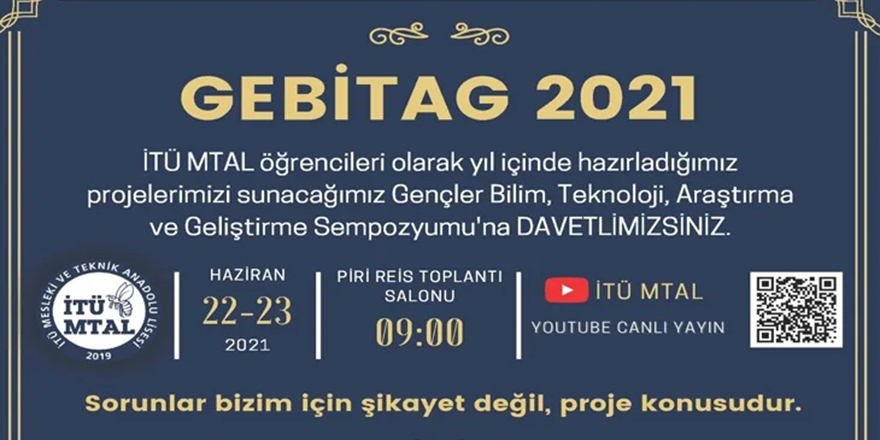Gençler bilim, teknoloji, araştırma ve geliştirme sempozyumu Gebitag2021; 22-23 Haziran tarihlerinde düzenlenecek.