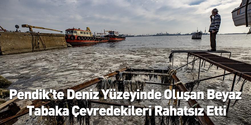 Pendik sahilinde deniz üzerindeki köpük benzeri bir tabaka çevredekileri rahatsız etti.