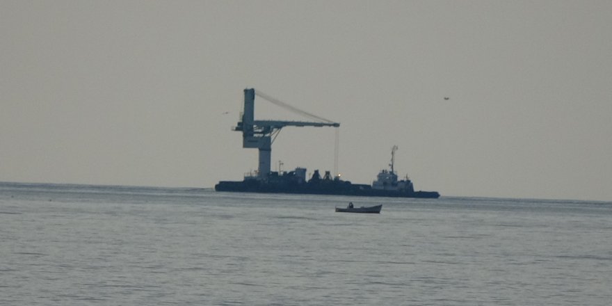 Trabzon açıklarında görülen Ukrayna bandıralı römorkör ve vinç platformu dikkat çekti.