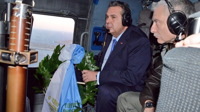 Yunanistan Savunma Bakanı Panos Kamenos, Kardak krizinin 21’inci yılı nedeniyle kayalıklara çelenk attı.