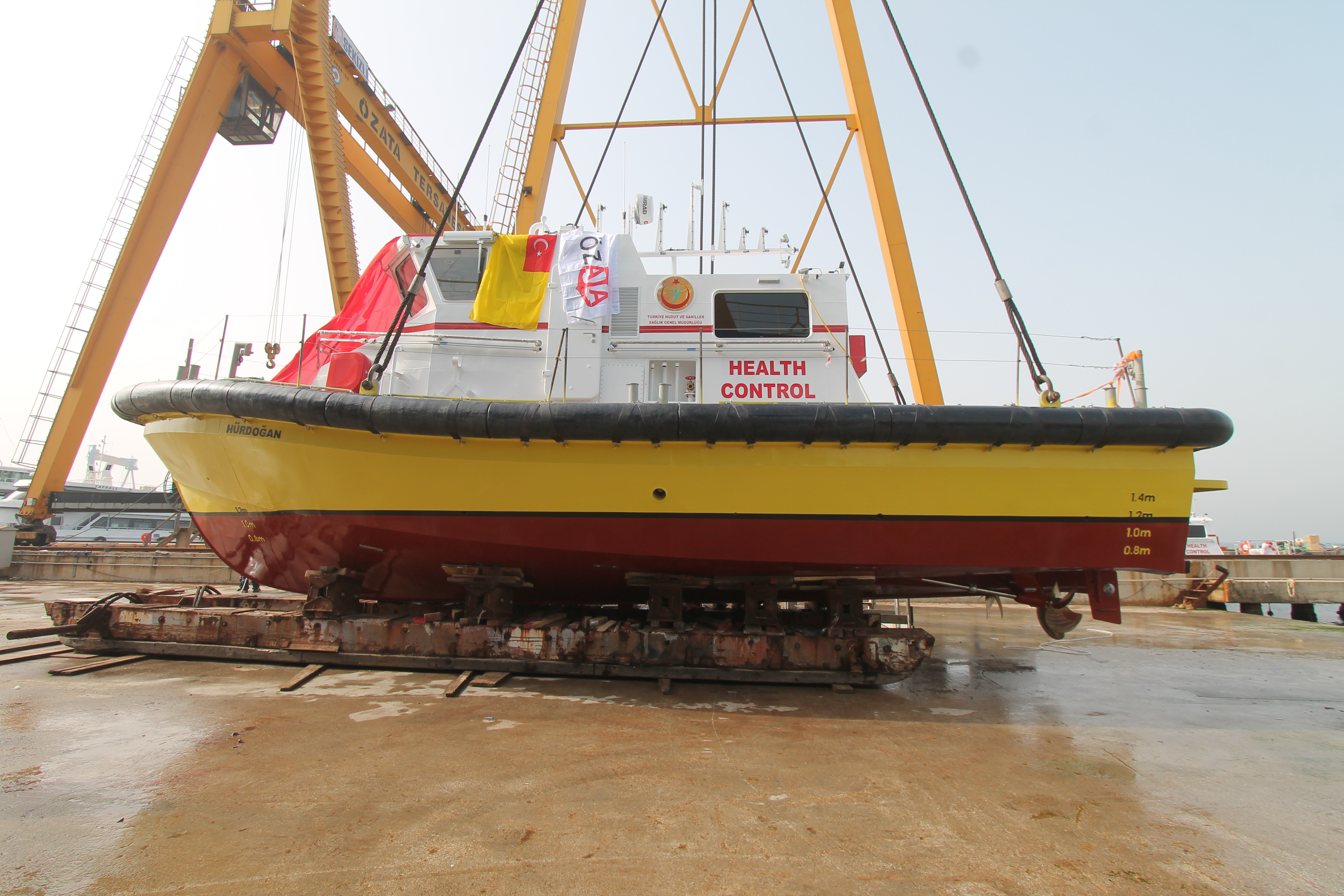Türkiye hudut ve Sahiller genel müdürlüğü için inşa edilen '15 Temmuz Sağlık ve Hürdoğan' adlı servis hizmeti botu Özata Tersanesi'nde denize indirildi.