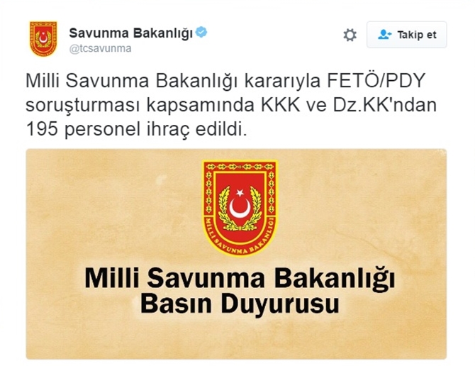 Kara Kuvvetleri Komutanlığı ve Deniz Kuvvetleri Komutanlığı'ndan olan ihraçlar ile ilgili ayrıntılı bilgi ise paylaşılmadı.