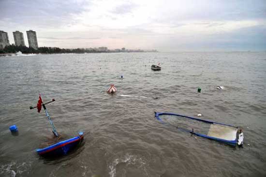Bazı vatandaşlar teknelerindeki suyu boşaltmaya çalışırken, bazılar ı da teknelerini daha güvenli yere çekti. Parçalanan bir tekne ise dalgaların etkisiyle sahilden yaklaşık 5 metre dışarıdaki asfalt bölgeye kadar sürüklendi. Ayrıca bir vatandaş da yola kadar çektiği teknesinin içindeki suyu boşalttı.