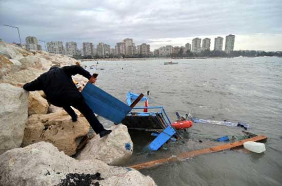 Gece boyunca esen şiddetli rüzgar ve yağış nedeniyle, ihalesini alan firma tarafından üstyapı inşaatı yapımı süren Mezitli Marinası'nın dışındaki kayalıkların kenarına demirleyen balıkçı teknelerinden 22'sinin battığı ya da kaybolduğu bildirildi.