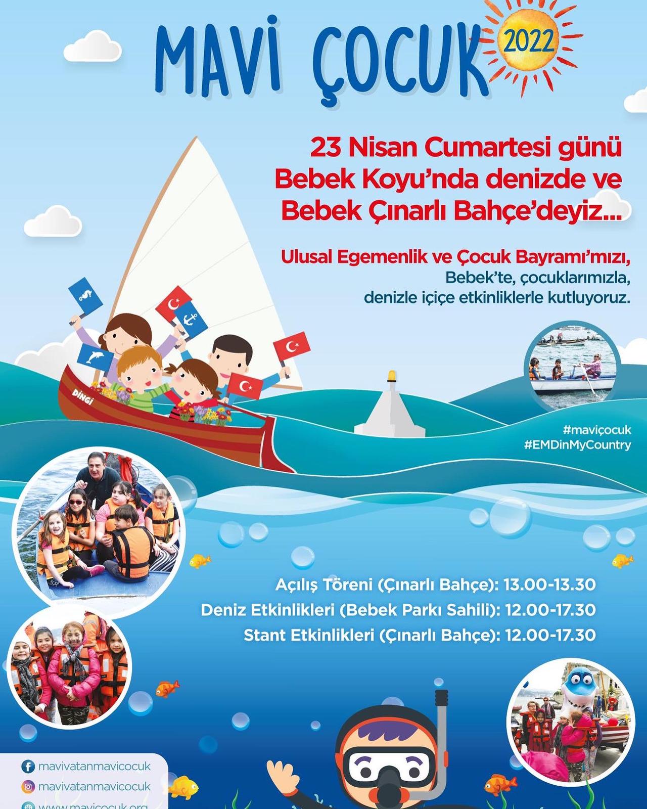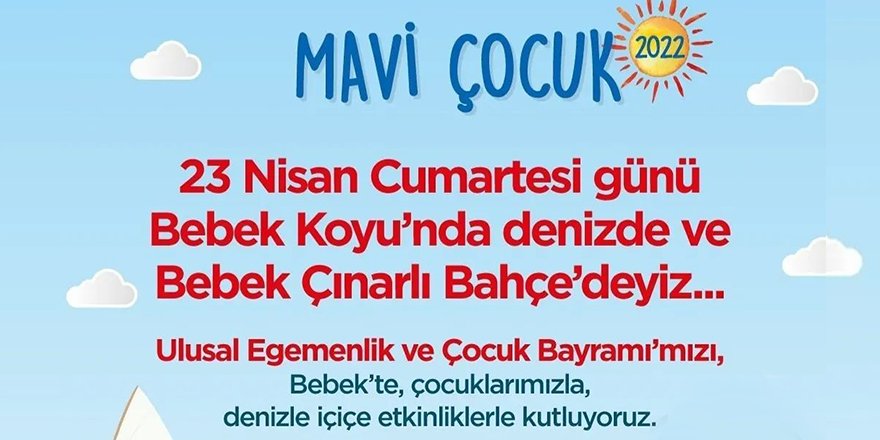 2016 yılından itibaren gerçekleştirilen “MAVİ ÇOCUK” etkinliği, bu yıl da 23 Nisan Ulusal Egemenlik ve Çocuk Bayramı'mızı deniz ile iç içe faaliyetlerle kutlamak üzere Bebek'te yapılacak.