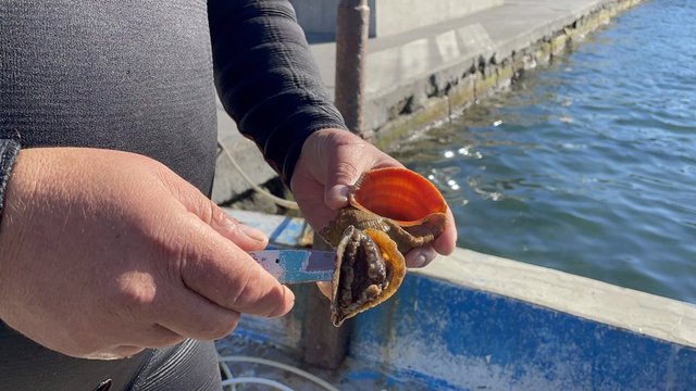 Deniz salyangozu hakkında bilgi veren Akpınar, "Deniz salyangozunu halk daha çok 'deniz kabuğu' olarak biliyor. Evde süs eşyası olarak ya da kül tablası olarak kullanıyorlar. Aslında deniz salyangozunun içinde et var. Biz bunları denizin dibinden toplayıp fabrikalara veriyoruz. Fabrikalar da bunları işleyip yurt dışına ihraç ediyorlar." ifadelerini kullandı.