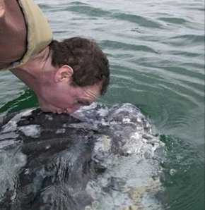 Kafalarını turistlere okşatan balinaları bazı maceraperestler öpüyor.