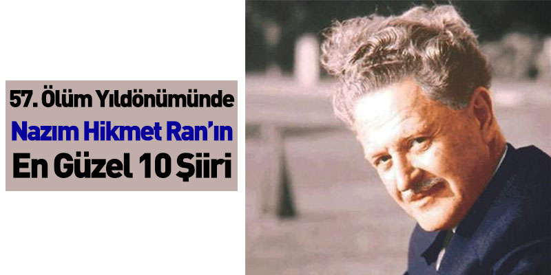 15 Ocak 1902 tarihinde Selanik'te dünyaya gelip, 3 Haziran 1963'te Moskova'da yaşamını yitiren Türkiye’nin ve dünyanın usta şairlerinden Nazım Hikmet Ran'ın en güzel 10 şiirini sizler için derledik.