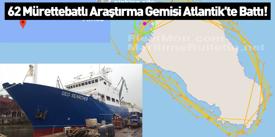 62 mürettebatlı araştırma gemisi Geo Searcher’ın dün Güney Atlantik Okyanusu’nda battığı bildirildi.
