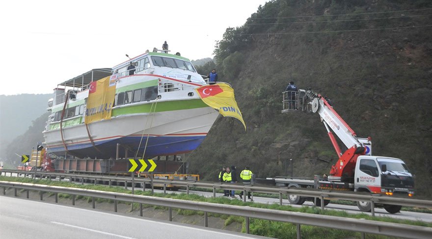 Türkiye´de, karadan yürütülen en hacimli gemi 'Akşemseddin', İznik Gölü´nde vinçle sudan alınarak, yüklendiği araç ile kara yoluyla Gemlik Körfezi´ne getirildi. Gemi, 2 yıl önce de aynı yolla Gemlik Körfezi´nden İznik Gölü´ne nakledilmişti.