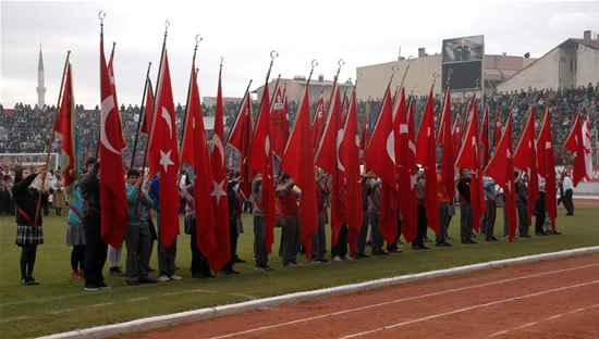 18 Çanakkale Mart Deniz Zaferi için stadyumda düzenlenen törende konuşan Başbakan Erdoğan, Çanakkale kahramanlarını, vatanı ve bayrağı için canını feda etmiş bütün şehitlerimizi rahmet ve minnetle yad ettiklerini ifade ederek, Mehmet Akif'in, "Kim bu cennet vatanın uğruna olmaz ki feda! Şüheda fışkıracak toprağı sıksan, şüheda!" mısralarını okudu. Her karışı şehit kanlarıyla sulanmış, her karışı için can feda edilmiş bu topraklarda, Türk milletinin istiklaline olan aşkını, tutkusunu bütün dünyaya gösterdiğine dikkati çeken Erdoğan, "Mehmetçik, 96 yıl önce, bütün dünyaya kahramanlığını, fedakarlığını ve kararlığını bir kez daha ispat etti. Çok büyük bir emanet taşıyoruz. Biz 74 milyon olarak gencimizle, yaşlımızla, çocuklarımız ve büyüklerimizle, zenginimiz ve yoksulumuzla tüm o şehitlerin emanetini omuzlarımızda taşıyoruz. Çanakkale'de, Dumlupınar'da, Sarıkamış'ta, Kutulamare'de, Yemen'de gözlerini ebediyete yuman o şehitler, biz bağımsız ve barış içinde yaşayalım diye canlarını seve seve feda ettiler. Onlardan aldığımız emaneti daha ileri taşımak gibi bir vazife taşıyoruz. Eğer vazifemizi ve sorumluluğumuzu hakkıyla yapmazsak o şehitlere karşı vebal altına girer, mahcup oluruz. Biz, şehitlerimiz karşısında asla mahcubiyet yaşamak istemiyoruz. Biz şehitlerimiz karşısında yüzümüzü yere eğmek istemiyoruz. Yarın ruz-i mahşerde huzurlarına çıktığımızda, onlardan aldığımız emanete sahip çıkmak, böylece şefaatlerine nail olmak istiyoruz. Türkiye'yi büyütmenin, itibarını artırmanın gayreti içindeyiz. Şehitlerin huzurunda boyun bükmemek için ülkemizi, milletimizi daha fazla huzur ve refaha kavuşturmanın gayreti içindeyiz" dedi.