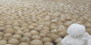 Kıyıya vuran gizemli buz topları korkuttuKıyıya vuran gizemli buz topları korkuttuRusya kıyılarına vuran ve oldukça düzgün forma sahip olan gizemli buz topları bölge halkına panik yaşattı. Fakat buz toplarının mantıklı bir açıklaması olabilir.