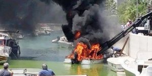 Denize indirilen tekne alev alev yandıDenize indirilen tekne alev alev yandıMuğla'nın Bodrum ilçesinde, çekici ile denize indirilmeye çalışan tekne alev alev yandı. Kısa sürede alev topuna dönen tekneye itfaiye ekipleri müdahale etti.