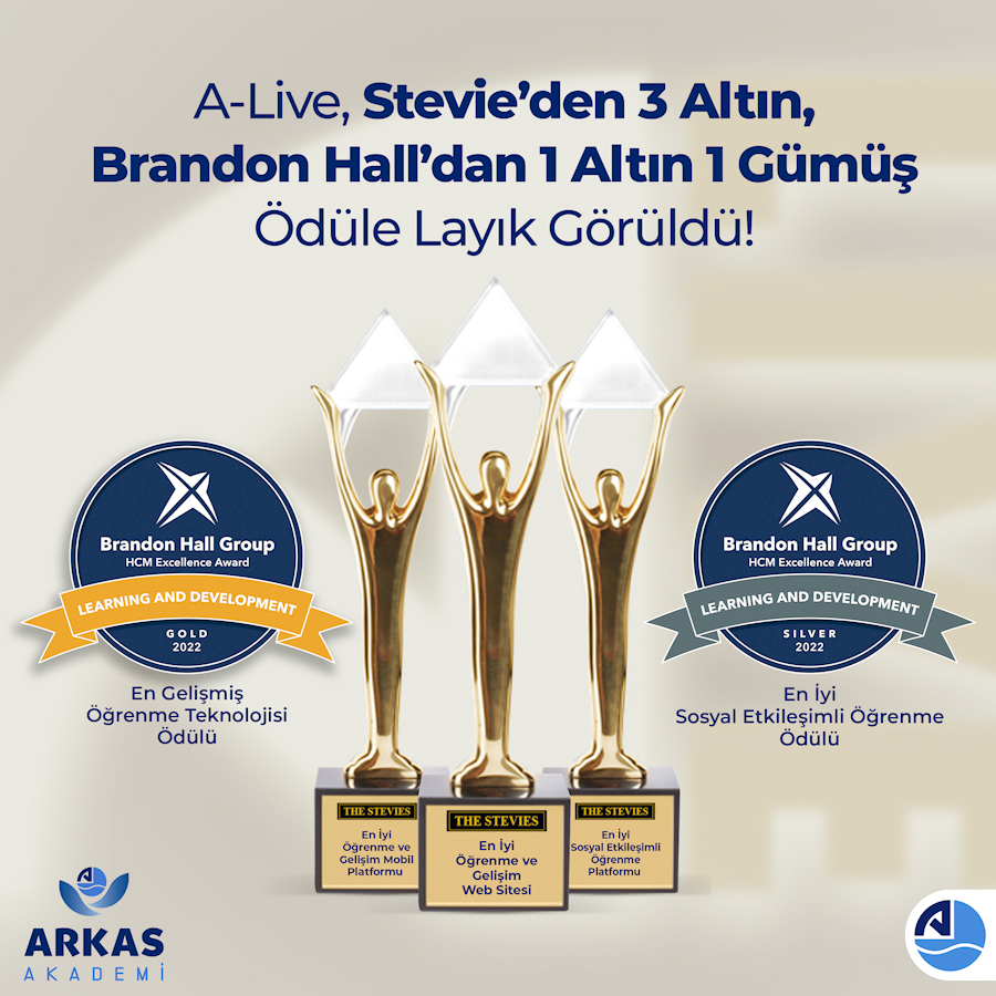 İnsan merkezli tasarım metodolojileri kullanılarak oluşturulan A-Live (Alive.arkas.com), 60’tan fazla ülkeden 3 bin 800’den fazla kurum ve yöneticinin yarıştığı Stevie Awards’ta, “Uluslararası İş Ödülleri” ve “En İyi İşveren Ödülleri” ana kategorilerinde 3 altın ödül aldı. A-Live, Uluslararası İş Ödülleri kategorisinde En İyi Öğrenme ve Gelişim Web Sitesi ile En İyi Öğrenme ve Gelişim Mobil Platformu/Aplikasyonu altın ödülünün sahibi oldu. En İyi İşveren Ödülleri kategorisinde yapılan başvuru ise A-Live’a, En İyi Sosyal Etkileşimli Öğrenme Platformu alanında altın ödül getirdi.