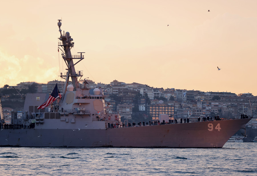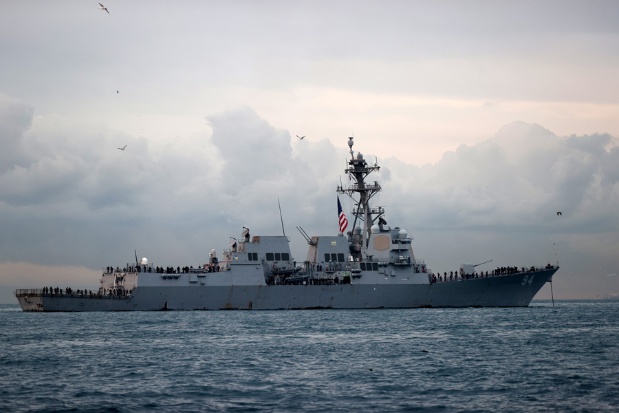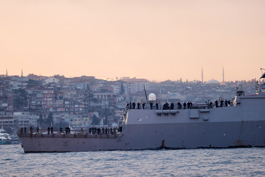 ABD donanmasına ait Arleigh Burke sınıfı savaş gemisi USS Nitze, saat 08.00 sıralarında İstanbul Boğazı'na Sarayburnu açıklarından girdi.