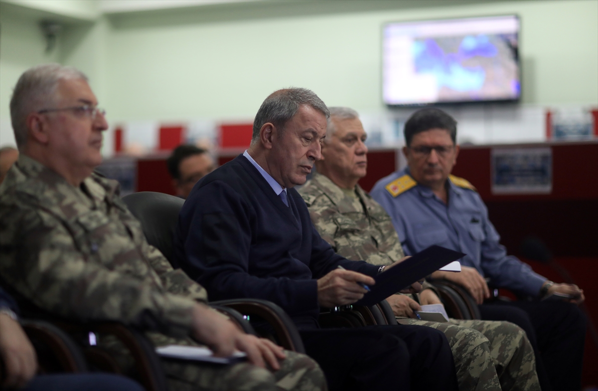 Milli Savunma Bakanı Hulusi Akar, Genelkurmay Başkanı Orgeneral Yaşar Güler ve kuvvet komutanlarıyla Mavi Vatan Tatbikatı’nın sevk ve idare edildiği karargahta denetleme ve incelemelerde bulundu.