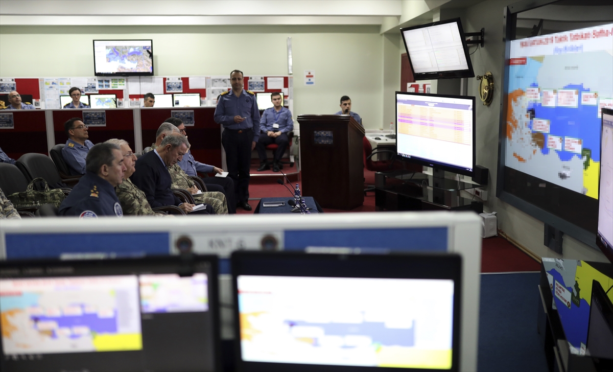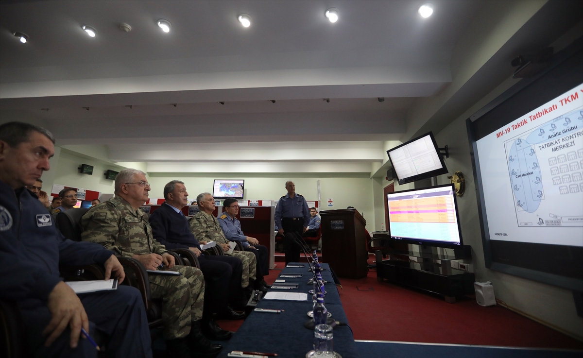 Milli Savunma Bakanı Hulusi Akar, Genelkurmay Başkanı Orgeneral Yaşar Güler ve kuvvet komutanlarıyla Mavi Vatan Tatbikatı'nın sevk ve idare edildiği karargahta denetleme ve incelemeler yaptı.