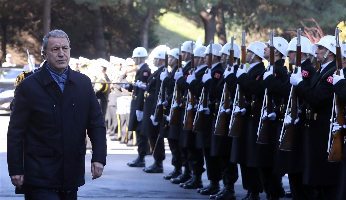 Komutanlığa gelişinde törenle karşılanan Bakan Akar, Donanma Komutanı Koramiral Ercüment Tatlıoğlu'ndan faaliyetlere ilişkin bilgi aldı.