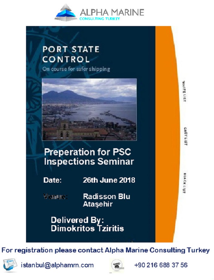 Alpha Marine Consulting, 26 Haziran’da Radisson Blu Ataşehir’de PSC Denetimlerine hazırlık ve en yaygın göz ardı edilen eksikliklerin giderilmesi için kurs düzenliyor.