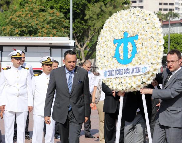 Deniz Ticaret Odası (DTO) Antalya Şubesi tarafından programı hazırlanan kutlamalar, Antalya Liman Başkanlığı, DTO Antalya Şube Başkanlığı ve TMMOB Gemi Mühendisleri Odası Antalya Şubesi Başkanlığı çelenklerinin konulmasıyla başladı. Liman Başkanı Murat Müftüoğlu, DTO Antalya Şube Başkanı İnanç Kendiroğlu ve TMMOB Gemi Mühendisleri Odası Antalya Şubesi Başkanı Ahmet Ünver'in katıldığı törende, denizciler de yer aldı.