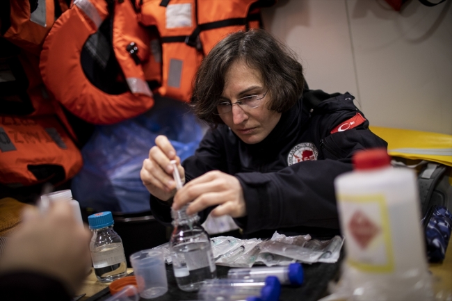 Araştırma projeleri için rotaları üzerindeki deniz sularından, karadan ve kıtadaki canlılardan örnekler alan bilim insanları, Antarktika'nın soğuğunda ve zorlu coğrafyasında araştırmalarını sürdürdü.