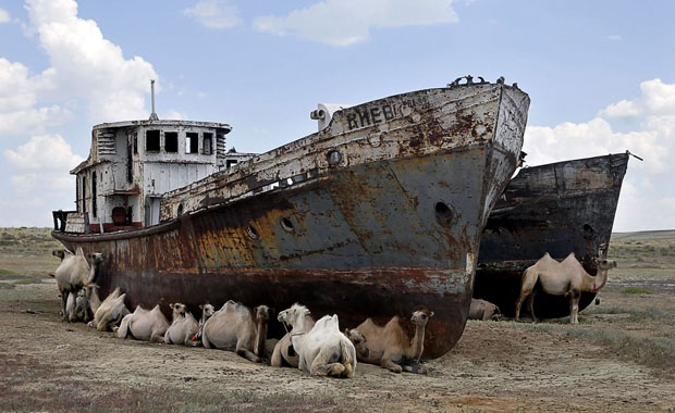 Aral Gölü, coğrafya kitaplarından hatırlanacağı üzere dünyanın en büyük dördüncü gölü olarak anlatılırdı. Ancak bugün yüzde 90'ı kuruyan Aral Gölü'nde artık fotoğrafçılar karaya oturmuş gemilerin fotoğrafını çekiyor.