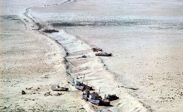 1980'li yıllara kadar canlı çeşitliliğinin bulunduğu, üzerinde gemilerin taşımacılık yaptığı Aral Gölü, yanlış sulama ve kuraklık sonucunda bugünkü haline geldi.