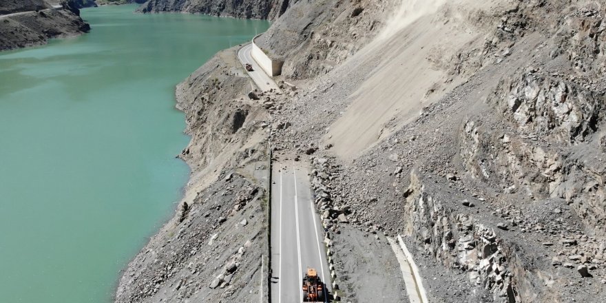 Artvin-Erzurum kara yolunun 45. kilometresindeki Esenyaka köyü mevkisinde yamaçtan kopan kaya ve toprak kütlesi yola düştü.