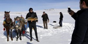 Bir başka güzel Çıldır Gölü'nde atlı kızak keyfiBir başka güzel Çıldır Gölü'nde atlı kızak keyfi