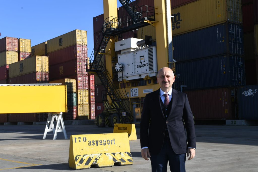 Asyaport Limanı ve Medlog Tren İstasyonu’nu gezen Ulaştırma ve Altyapı Bakanı Adil Karaismailoğlu, Asyaport Limanı’nın büyüme alanında inceleme yaptı.