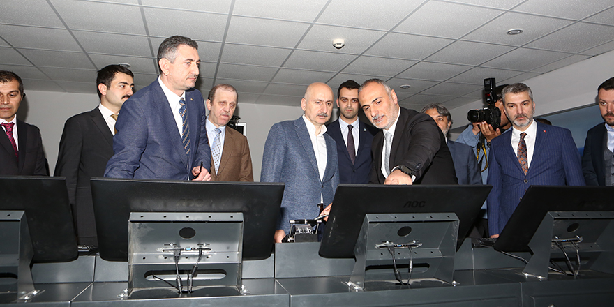 Fakültedeki tam donanımlı köprü üstü simülatörünü inceleyen Karaismailoğlu, uygulama sayesinde gemiyle Kanal İstanbul'da bir süre seyretti.