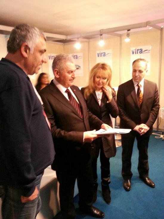 Vira Dergisi'nin standını ziyaret eden Ulaştırma Denizcilik ve Haberleşme Baknı Binali Yıldırım Vira Dergisi Genel Yayın Yönetmeni Hakkı Şen'den Vira Dergisi ve diğer yayınlarla ilgili bilgi aldı.