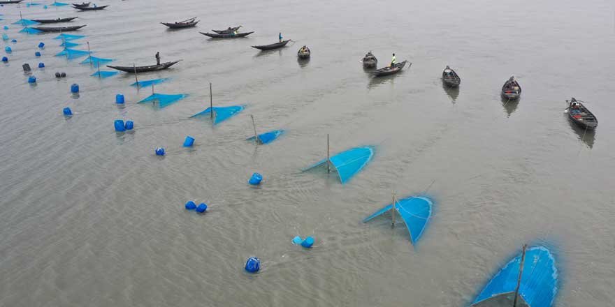 Bangladeş’in Bengal Körfezinde gerçekleştirilen karides avcılığı, bir yandan bölge halkı için önemli bir geçim kaynağını oluştururken, bir yandan da yapılan kontrolsüz avcılık, bölgedeki karides neslini tehdit etmekte. Avcılık alanları, havadan görüntülendi.