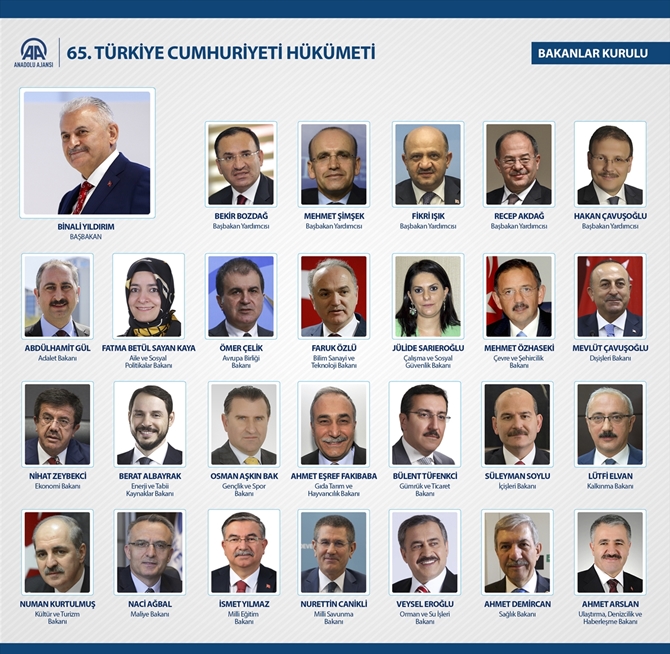 Bugüne kadar Bakanlar Kurulunda görev yapan ve bu değişiklikle görev almayan, görevine devam etmeyenlere yaptıkları hizmetlerden dolayı teşekkürlerini ileten Yıldırım, yeni görev alanlara da başarılar diledi.