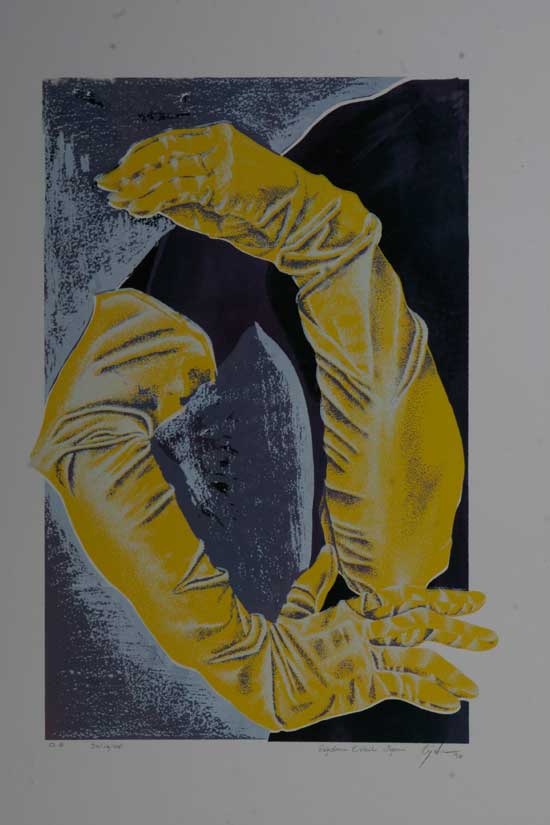 Çiğdem Erbil: İçinde insan bedenlerinin yer almadığı giysi formları ve nesneleri görünen halleriyle değil üçüncü boyutlarıyla yansıtmasıyla tanınan sanatçı, tarzını yansıtan baskı resimleriyle sergide yer alıyor.