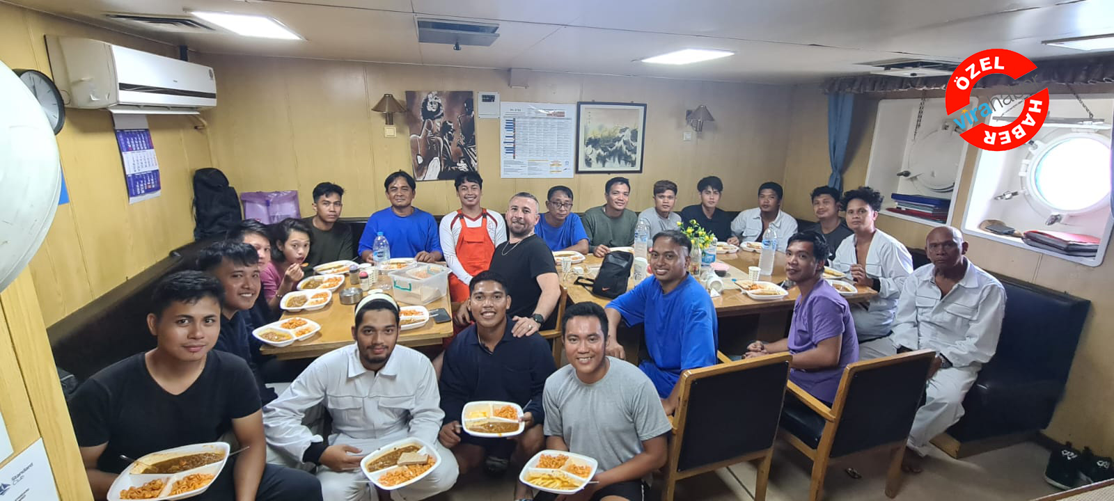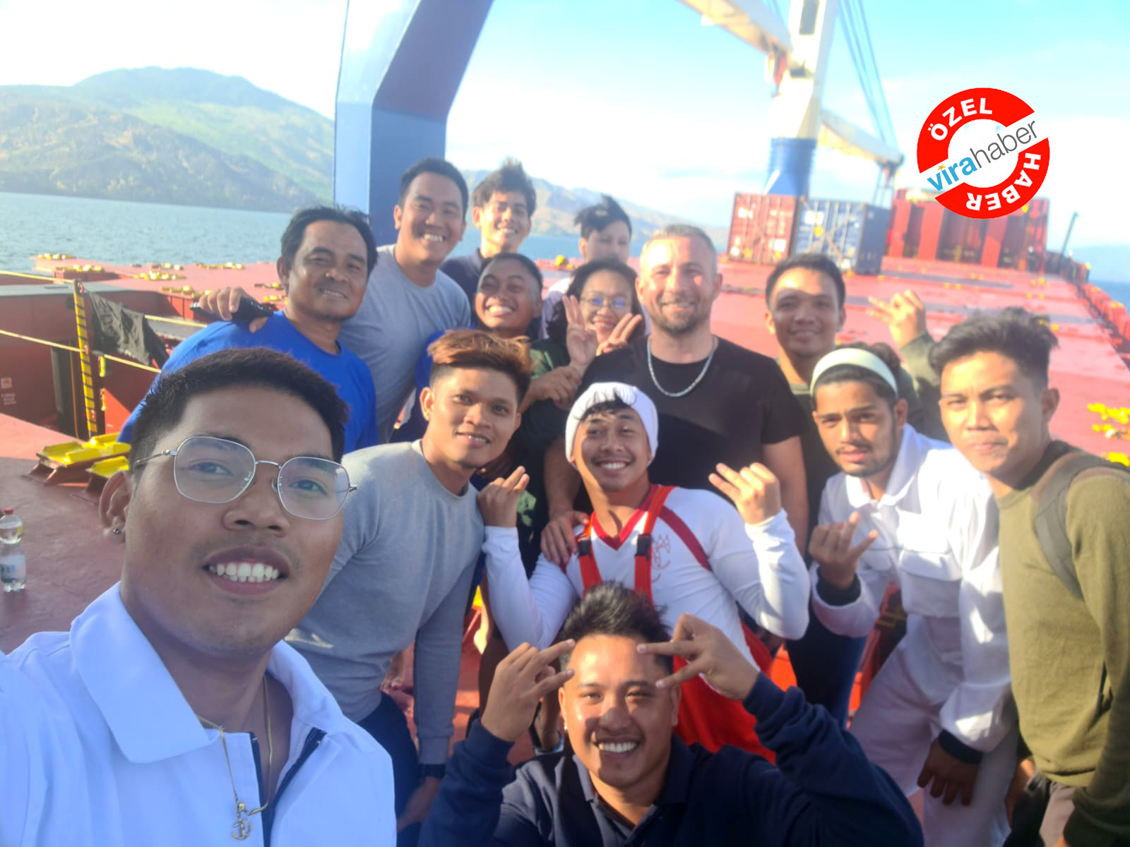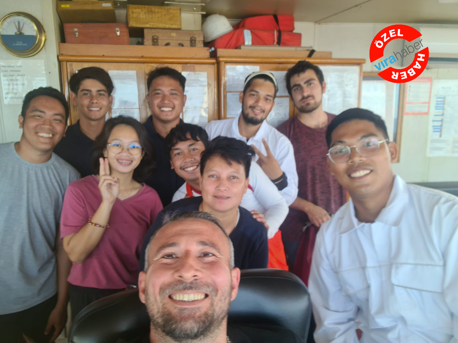 Başarılı operasyonun ardından gemiye alınan mürettebat, kurtarıcıları olan MV Efes Gemisi mürettebatı ile birlikte fotoğraf çektirdi.